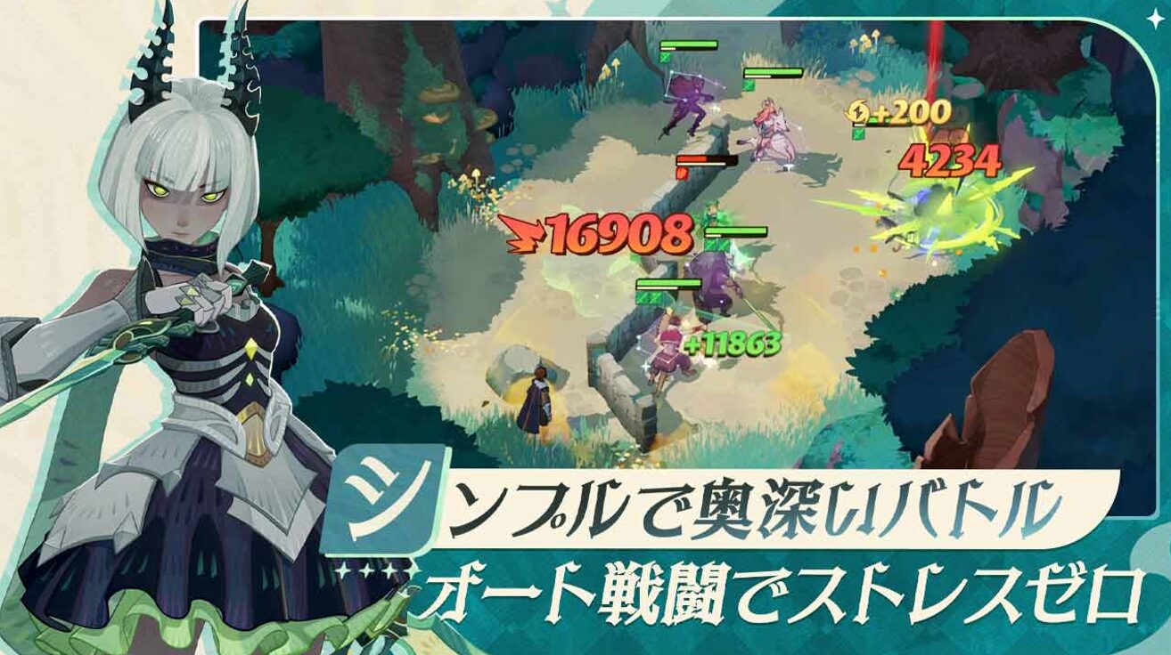 美しいグラフィックと魅力的なキャラクターデザインが特徴で、放置するだけでキャラクターが成長し、素材を集めてくれるというシンプルなシステムが魅力です。