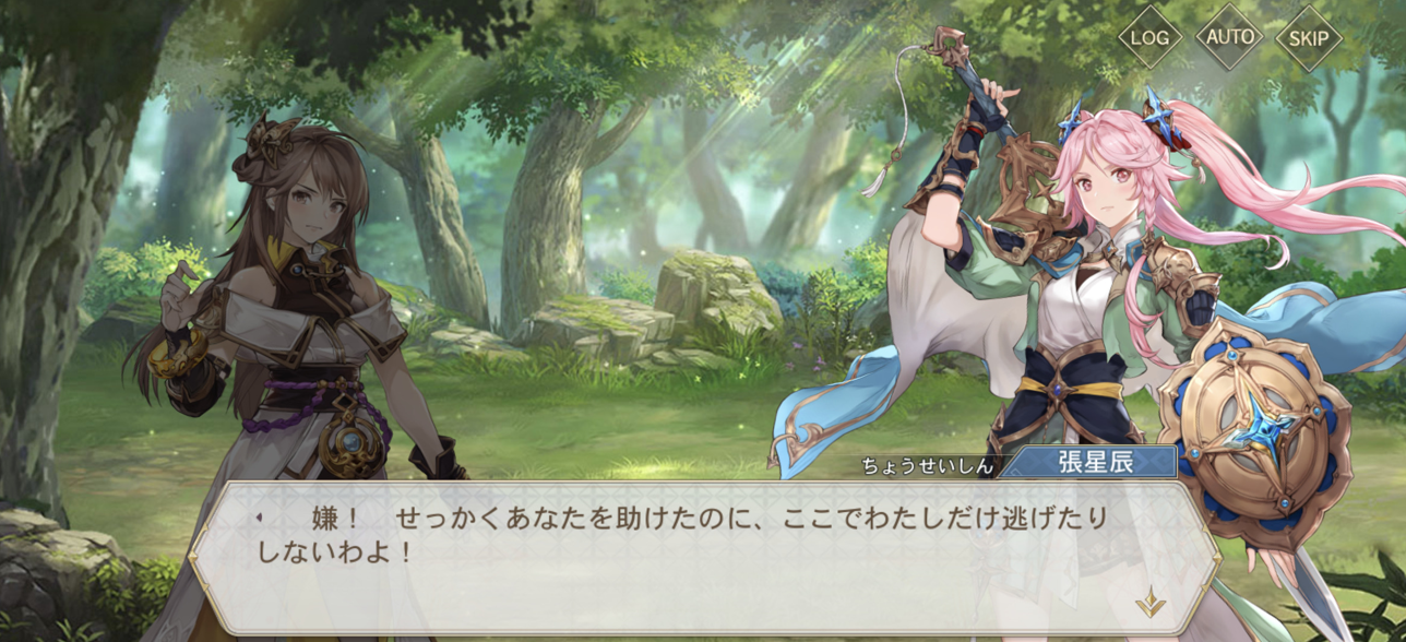 序盤終えてもう少し進めればソシャゲとしてストレスなくプレイできますし楽しいと思います。もちろん倍速もCGスキップもあるし、なんならモブ敵スキップできるのでストーリーはサクサク進みます。天井も40連で、キャラを選んでガチャする機能もあるし、欲しいキャラを簡単に狙えます。
