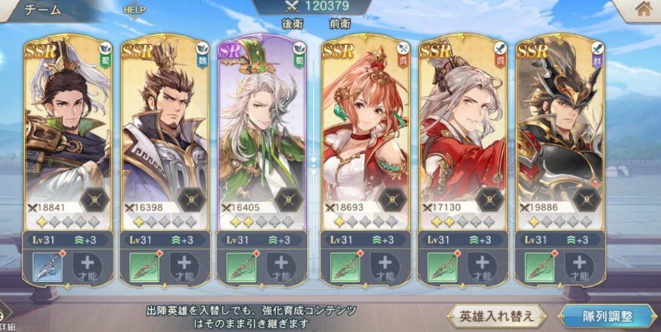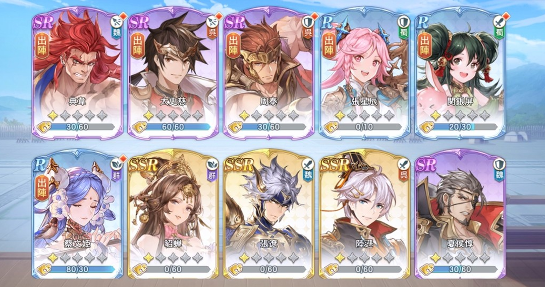 ソシャゲの魅力の1つであるガチャについてですが、無課金でもかなりのガチャを回せます。天井は40連。イベント期間中以外は、所謂ピックアップガチャ的なものはありません。恒常キャラの中から、自分で欲しいキャラを設定して天井を目指す形になります。無課金、微課金でも、続けていれば必ず完凸まで育成が可能です。ベースである三国志の勢力で編成を考えるもよし、見た目や声優で決めるのもよし…ですが、育成のリソースが限られているので、あれもこれも育てたい!という人は課金が必要になってくるかと思います。