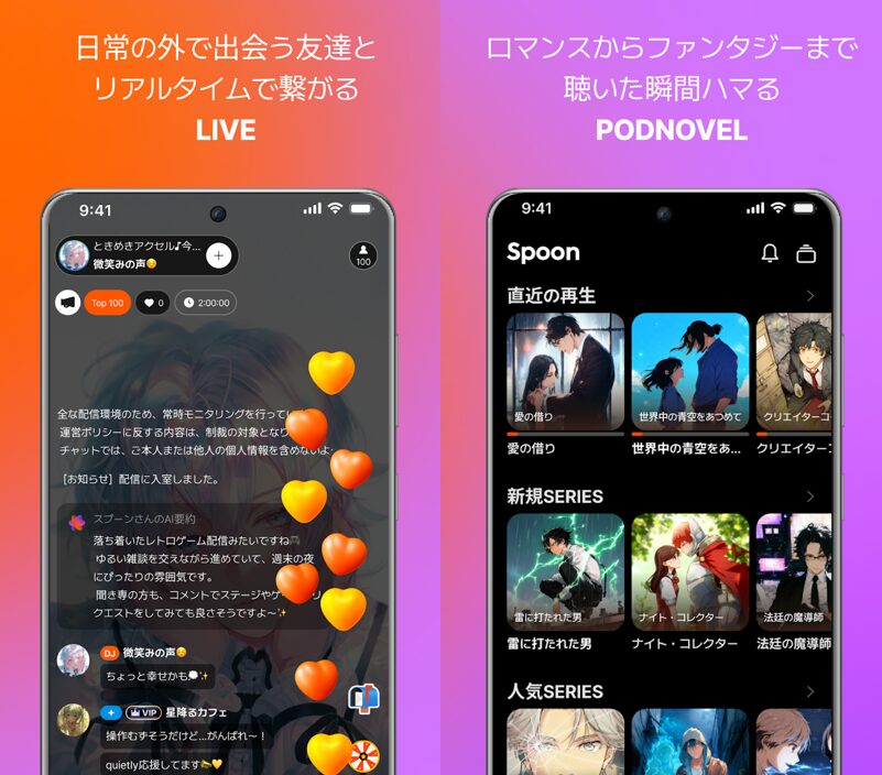 スマホ一つで気軽に配信・視聴ができるライブ配信アプリが増える中、「声」だけに特化した独自路線で人気を集めているのが《Spoon(スプーン)》です。