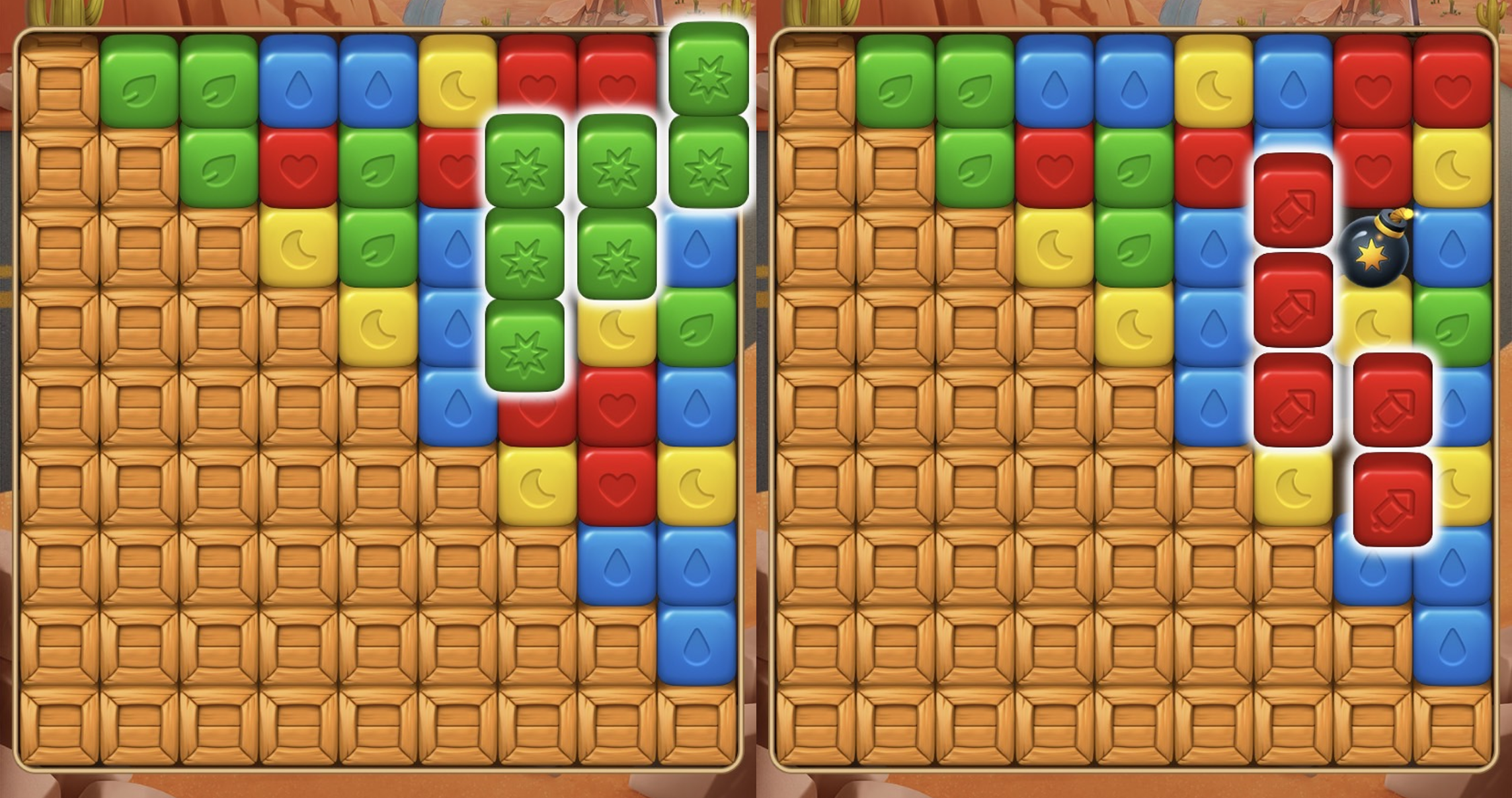 『トゥーンブラスト』はギミックに近くてブロックが置ける場所がせまい部分はスペシャルアイテムが発生しにくいです。