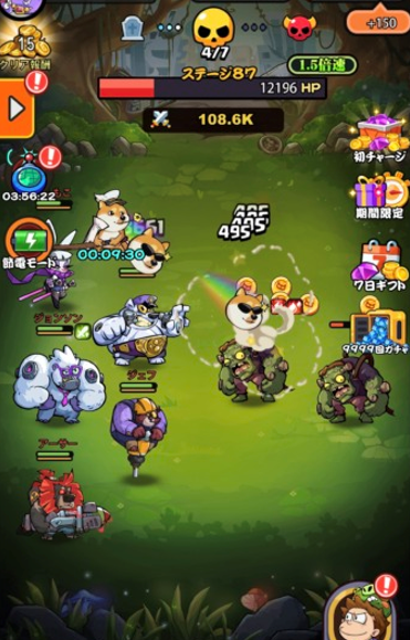 僕のおすすめです。萌えペットがスーパーヒーローに変身、かわいいペットといっしょにゾンビ倒しのテーマがおもしろいです。そして、他の放置ゲームと違って、レベルアップが早い、簡単な操作でアップアップアップ、電車で暇つぶしにおすすめです。